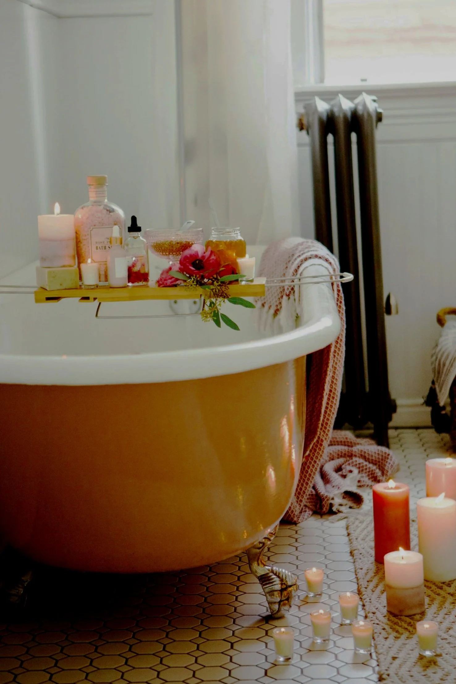 Bath-time Reveries: Warm, scented water, a gentle evening glow